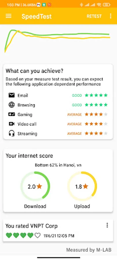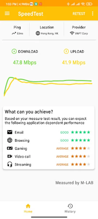 * Track all your past speed and measurement tests through an intuitive test history and provide a detailed overview of each test.
