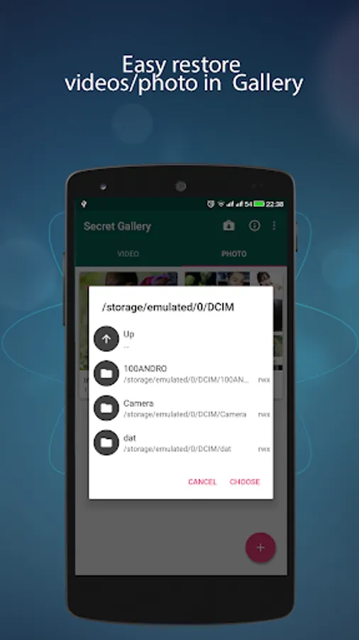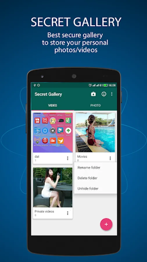 Secret gallery locks videos and images with vault to keep them protected from prying eyes! - The ultimate secret gallery locks and hides media file on your Android devices.