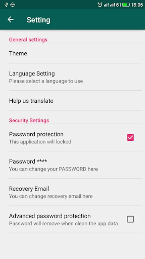 The app protects your sensitive videos and photos with a password. It is practical, easy, effective and extremely lightweight.