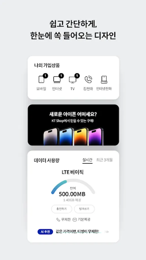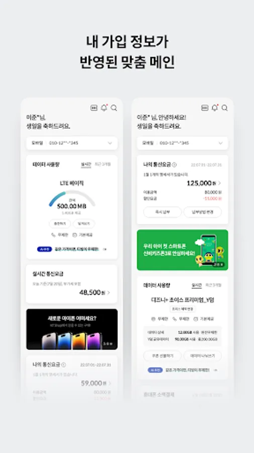 You can easily check usage/rate inquiry, membership, additional services, and customized benefit information.