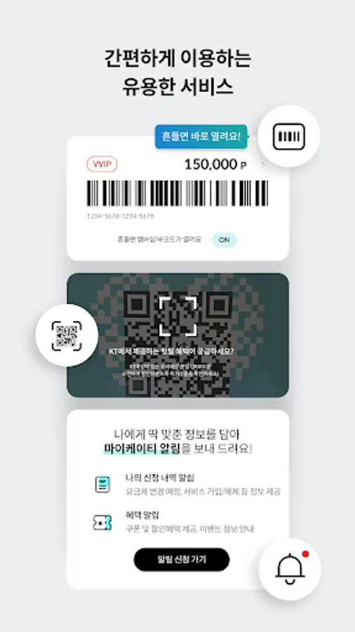 You can use the main functions of other KT apps, such as KT membership movie reservation, Family Box, and Y-box data sharing, in MyKT.