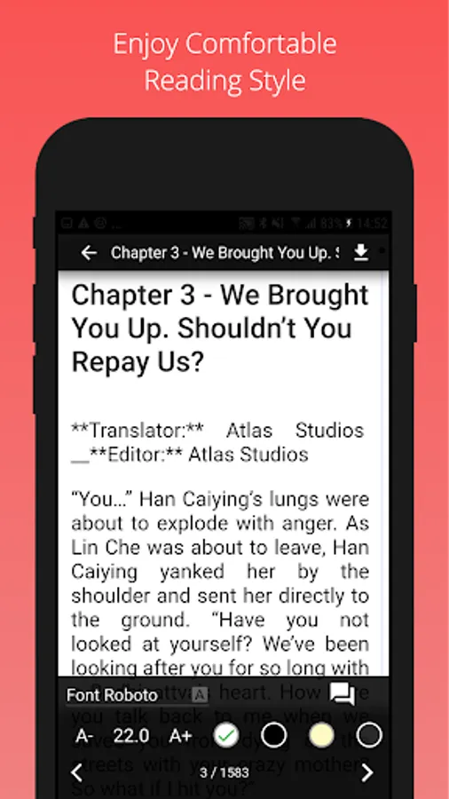You can always find an enjoyable way to read by customizing the text size, font type, text alignment and other adjustable settings.