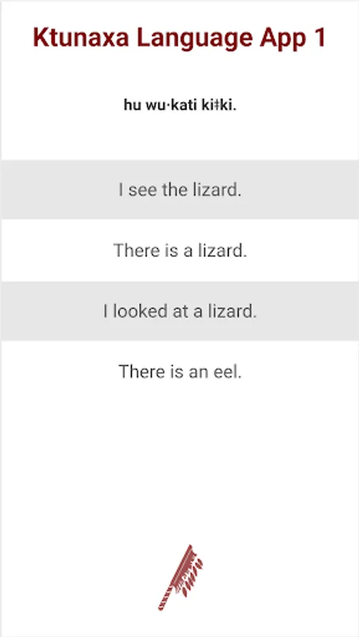 This in an app to help Ktunaxa learners recognize basic grammar patterns. The app utilizes contemporary Second Language Acquisition feedback to help learners notice "gaps" in their Ktunaxa language knowledge.