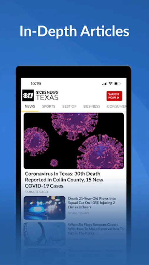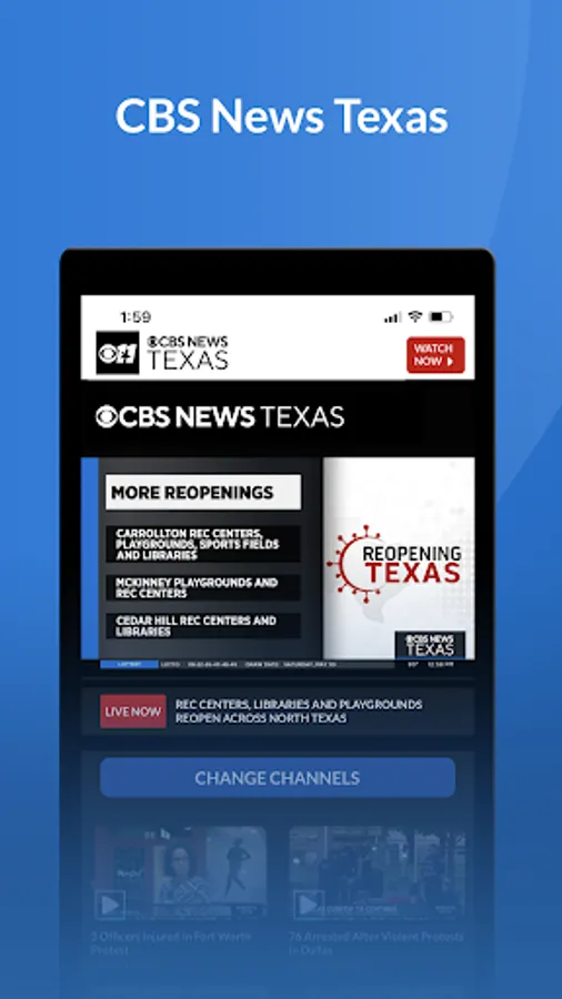 The CBS 11 / CBS Texas app brings you the latest news, sports, weather and lifestyle content from the Dallas - Ft. Worth area. In addition the CBS News Texas stream is always available.
