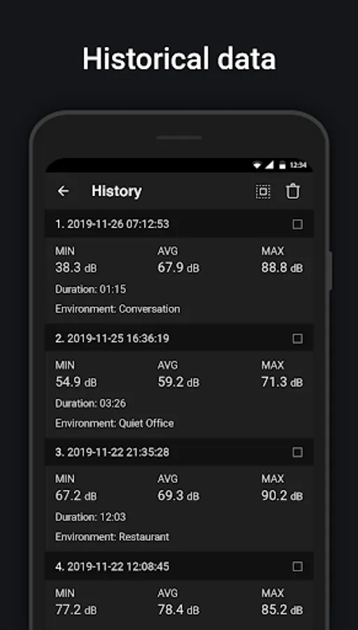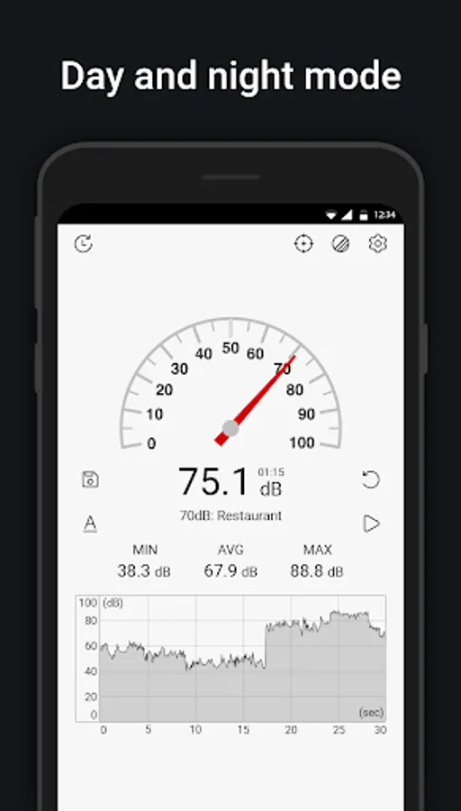 - Display minimum(Min), maximum(Max) and average(Avg) Decibel(dB) in the recording session