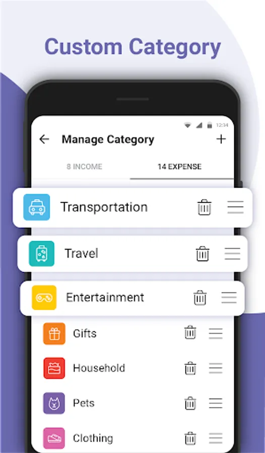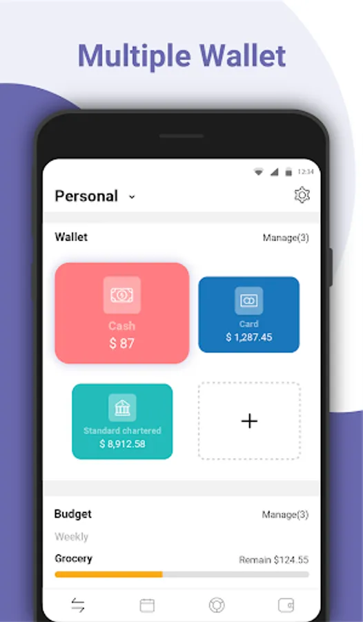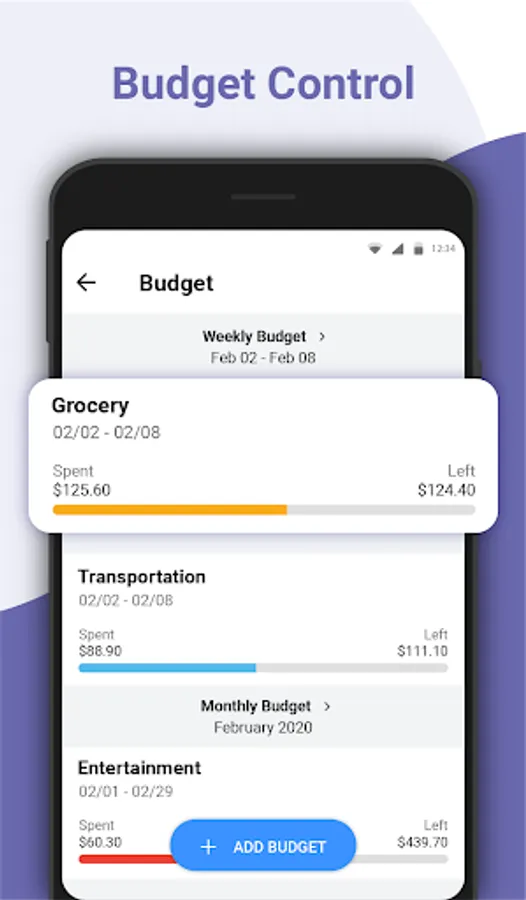 With this expense manager, you can control your expense with budget and save more to reach specific financial goal.
