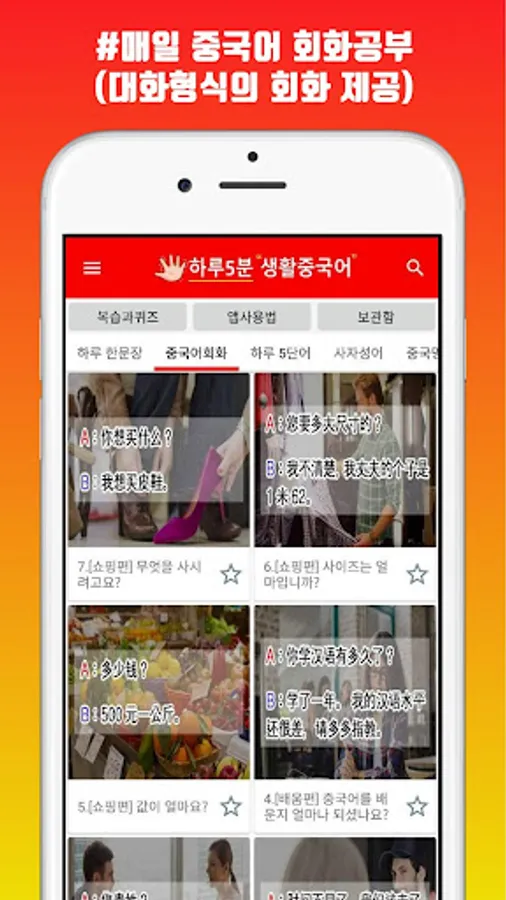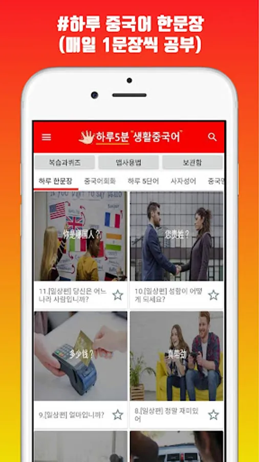 -Learn one sentence a day with Chinese pronunciation for 5 minutes every day.