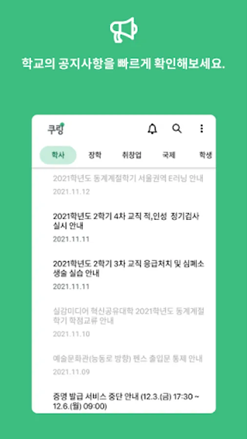 There's an announcement waiting for you, but you're tired of going to Konkuk University's website every time? Kuring solves it.