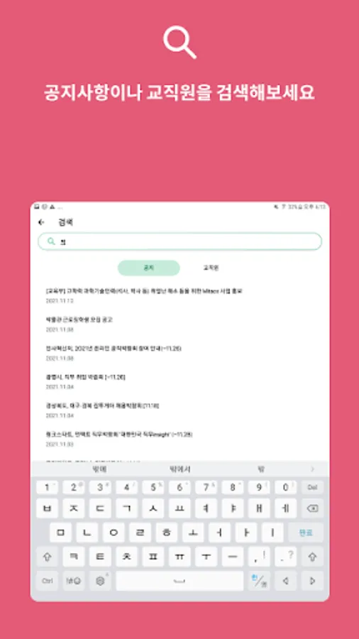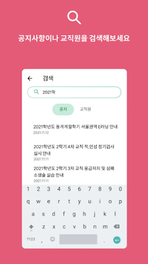 You can easily access the notices of the school on mobile, and search for and view the school staff/notices.