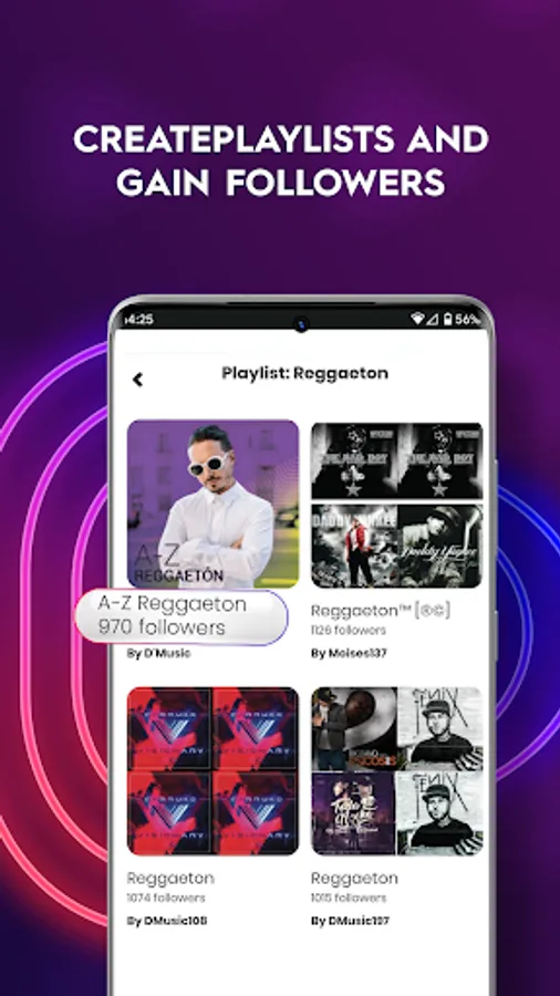 - Create playlists and gain followers