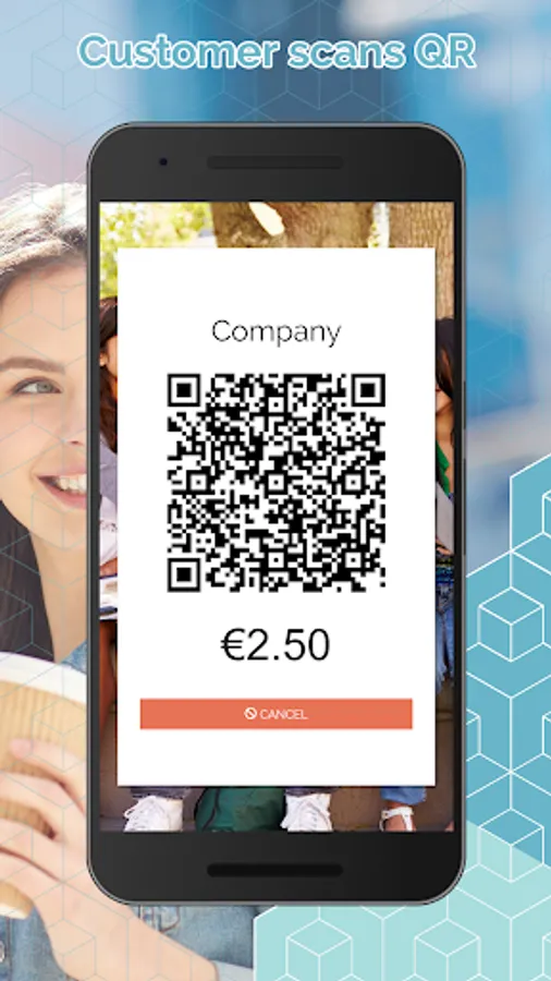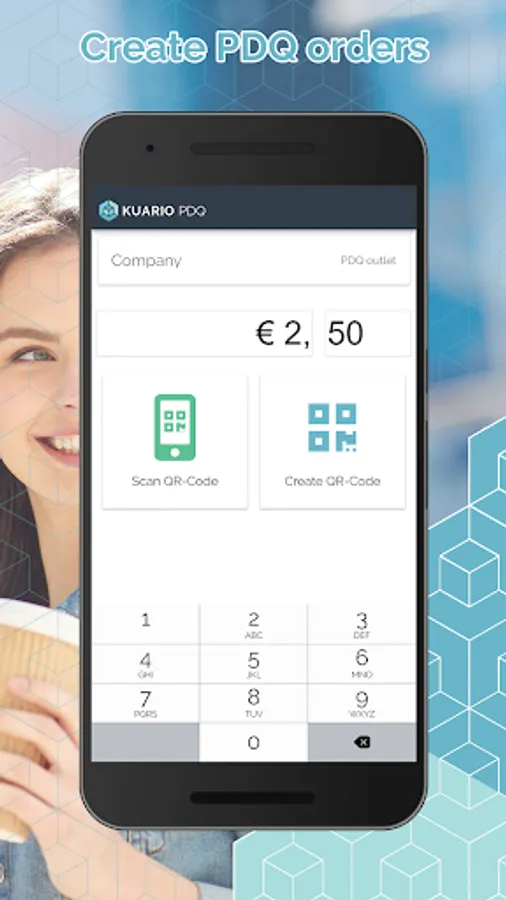 You download the KUARIO PDQ app on your mobile device, enter the amount that needs to be paid and a QR code will be displayed on your screen. The customer can now scan the QR code with their phone from your screen and the money will be transferred directly to your account.