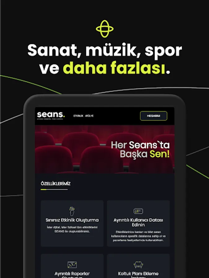Culture and art events are now on the Session mobile app, mobile, tablet! Easily experience an event full of concerts, movie screenings, theatres, festivals, seminars, talks, sports organizations and workshops. If you are ready to be another you in every Session, download now for free.