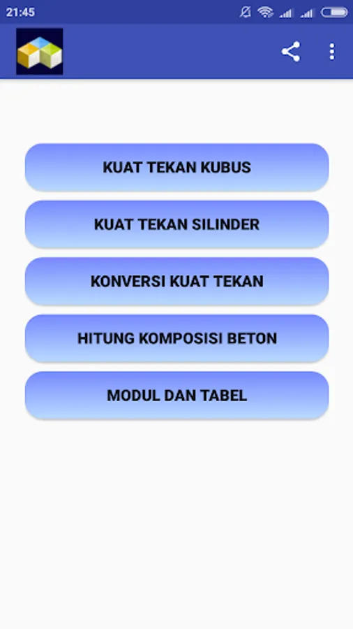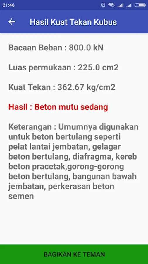 Concrete Mix is an application to simplify the calculation of concrete mix design and calculation of concrete compressive strength test.
