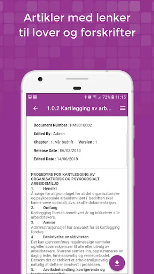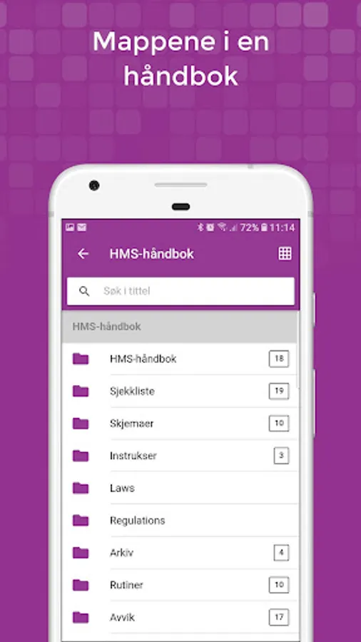 Kuba IK also contains a selection of handbooks that allow the system to be adapted to the company's needs, and contains most things from a simple HSE handbook to a more comprehensive quality system. These are of course available in the Cuba app and the content you want to watch is downloaded to your phone.