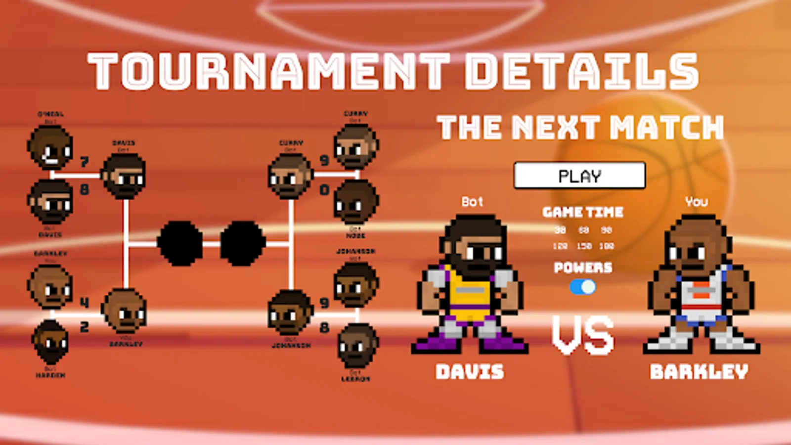 In 2 3 4 basketball games you can choose one of more than 10 basketball superstars and enter the tournament or league. And remember, it's not the most important whether you win or lose. What counts is good fun and the possibility of spending some time with your friends and pixel basketball players.