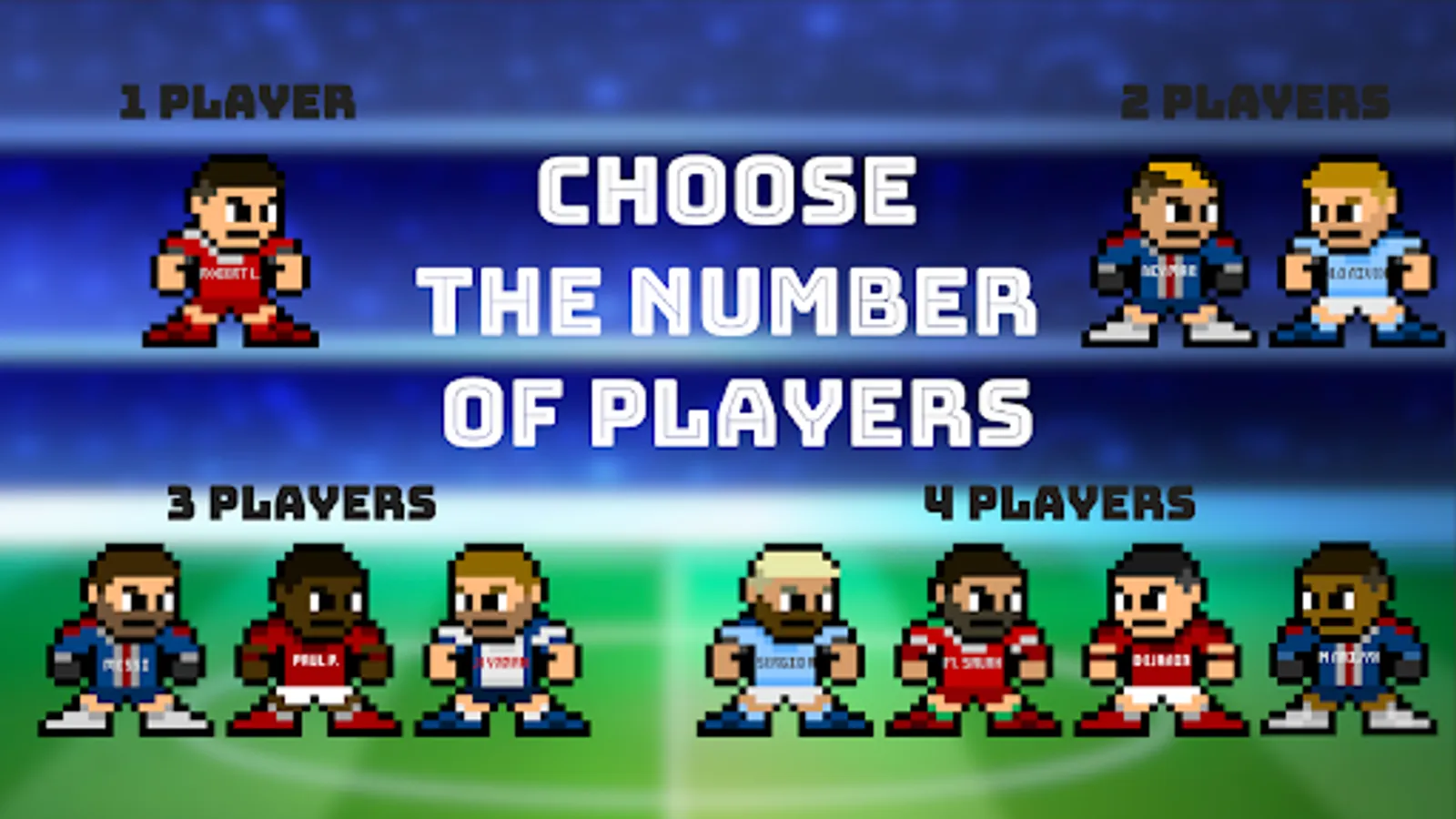You probably know that Football and soccer are about kicking the ball and scoring goals. Therefore, Kick, strike and score using one of many pixel footballers. Use your feet, head, and superpowers to score goals. 2 3 4 Soccer Games: Football offers amazing gameplay that can be quickly transformed into exciting games.