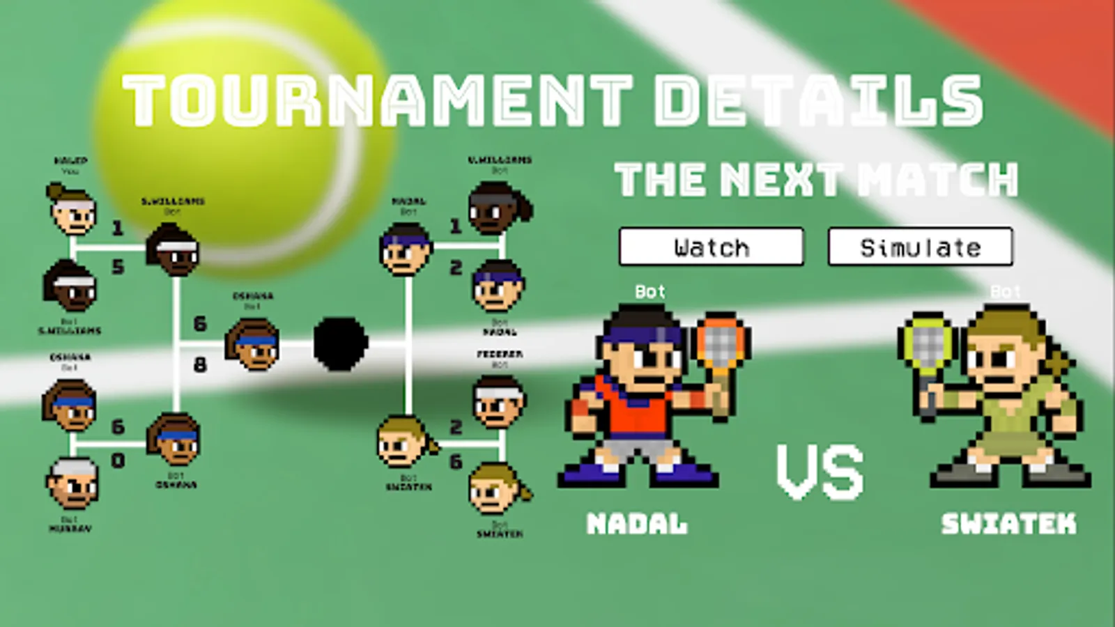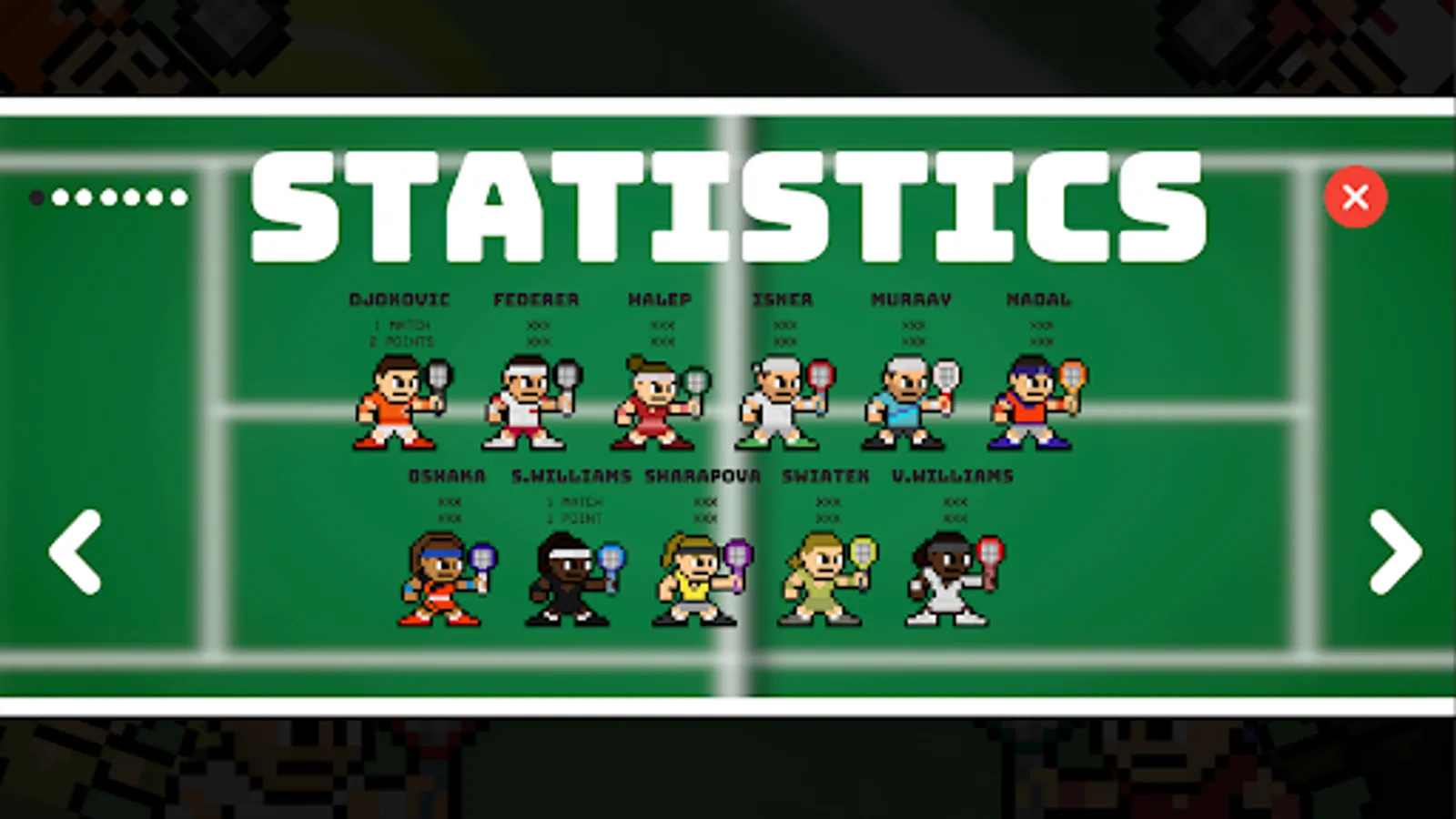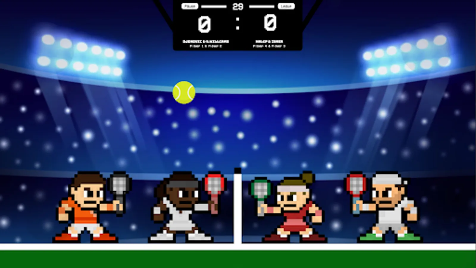 Pick your favorite tennis player and start the match. Try to get as many points as possible and not concede even one in this pixel tennis game.