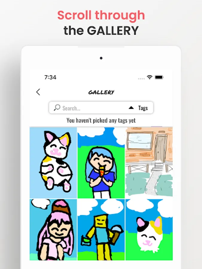 #Look through many drawings with only swiping your finger. Additionally, you can go to the gallery and find the best drawings, sketches, and procreations. You are guaranteed to be inspired by the artflow.