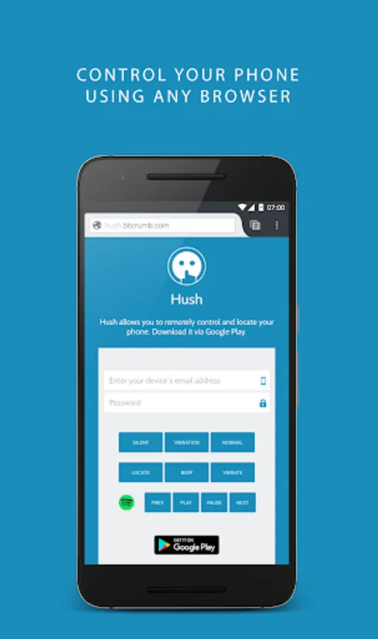 Hush allows you to locate and find your phone from anywhere in the world.*