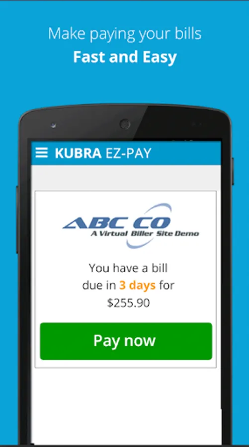 KUBRA EZ-PAY is the quickest way to pay your bills anytime, anywhere from your phone or tablet. Pay different billers - all from one app!