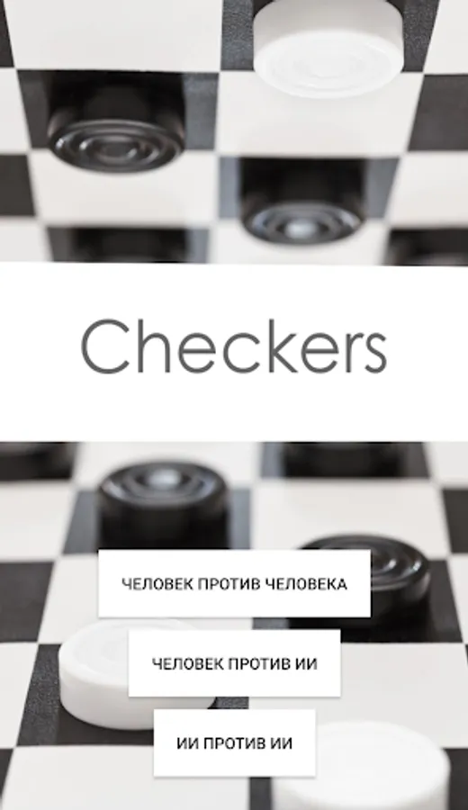 There is an opportunity to play in the modes: "Man against AI", "AI against AI", "Man against man."