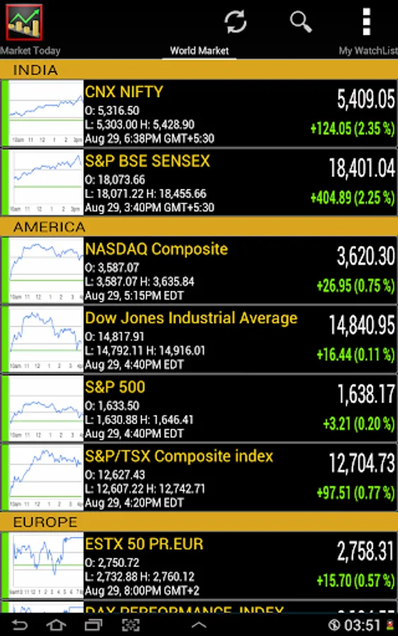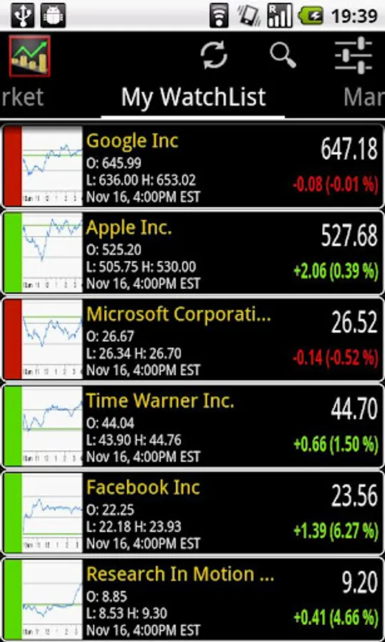 - Customized watch-list with real-time updates and small charts. Select the stock for any market and add to watch-list