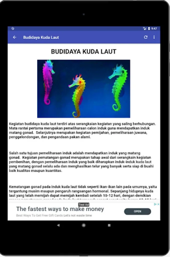 Ways of Cultivating Sea Horses - In this case there are a number of steps to cultivation of sea horses that you can apply, it is quite complicated steps that you have to do in terms of seahorse cultivation. The steps of seahorse cultivation consist of mother rearing, spawning and incubating, juvenile care, seed stocking, feeding and replacing water.