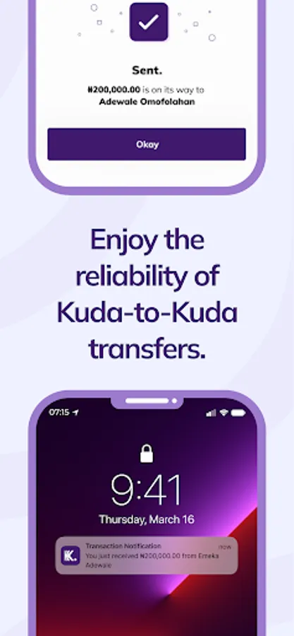 Keep up with your finances without losing sleep. No card maintenance fees, free transfers and automatic savings in your account — Kuda gives you everything you need to stay on top of your money. Download the app today.