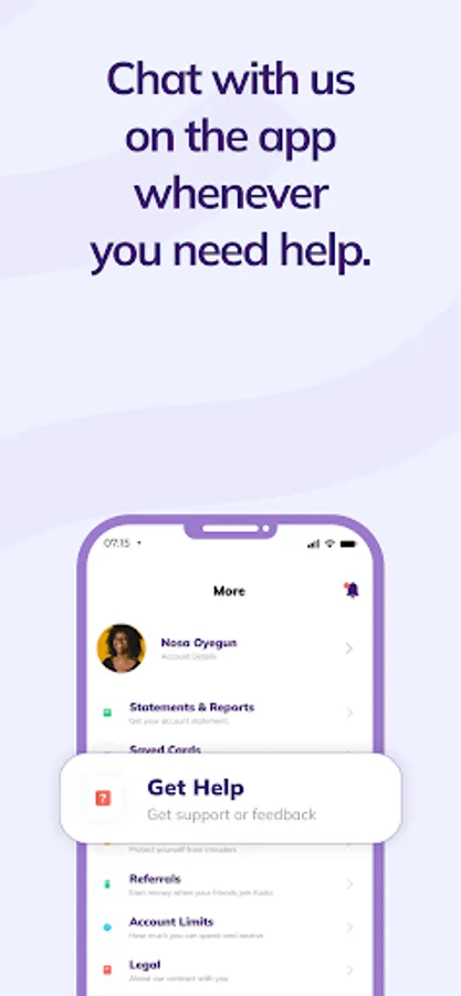 - If you need help, you can chat with us on the app or send a message to help@kuda.com anytime.
