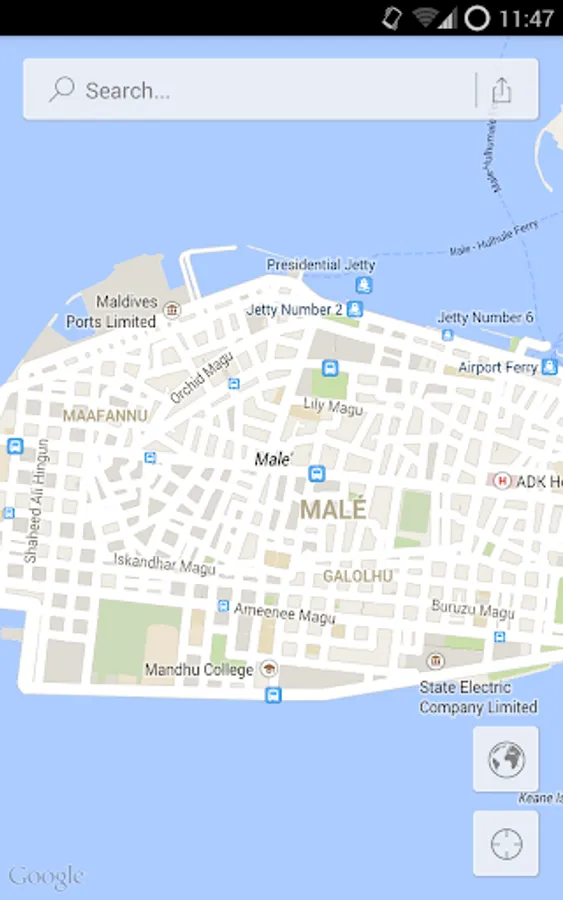 Quickly look-up addresses and places in Male' (Maale, Capital city of Maldives)