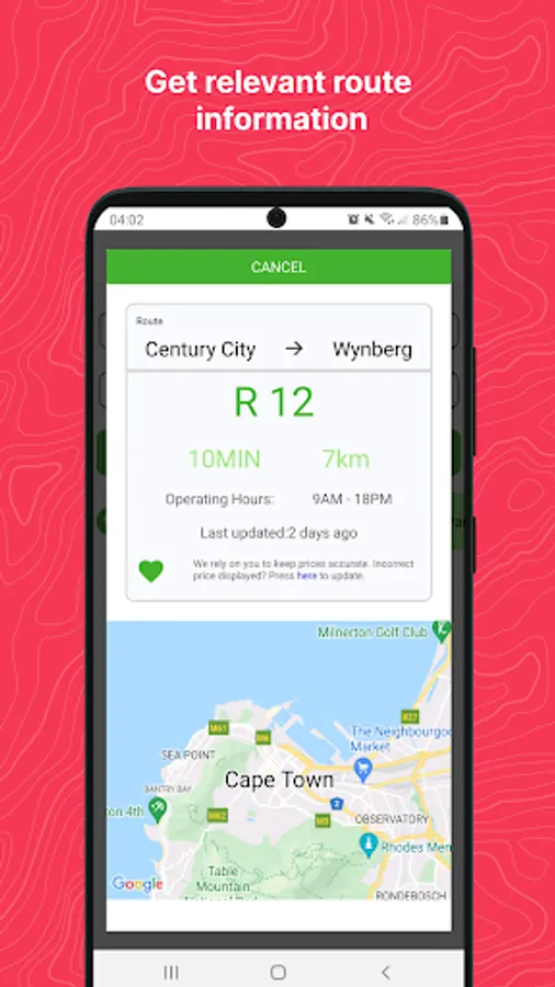 The aim of the app is to utilize data collected to provide information about fares, frequencies, common stopping points and bus stops. This is to improve the ease of moving around using the mini-bus taxi system. The initial scope of the project is to have such an app for Cape Town.