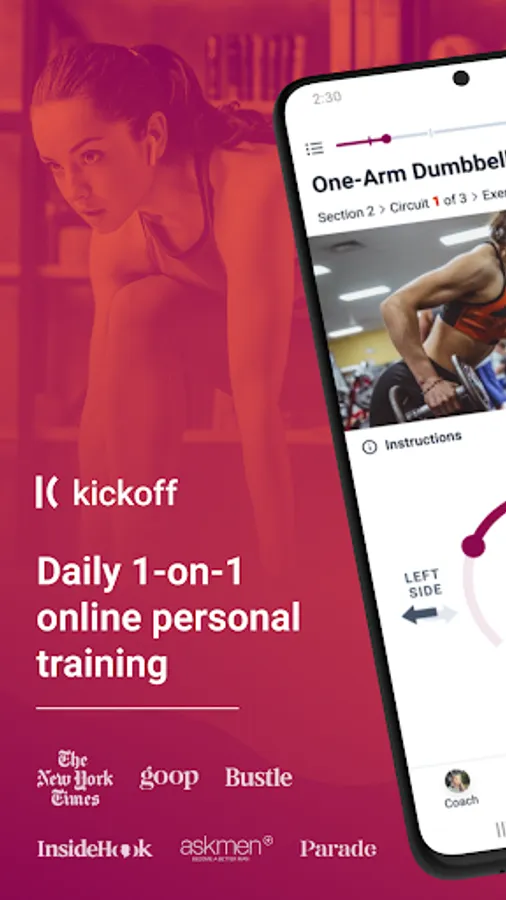 Everyone needs human support and accountability to reach their fitness goals, but traditional personal training services are prohibitively expensive for most of us. Kickoff gives everyone access to all of the benefits of a 1-on-1 relationship with an expert personal trainer at a price that makes sense.
