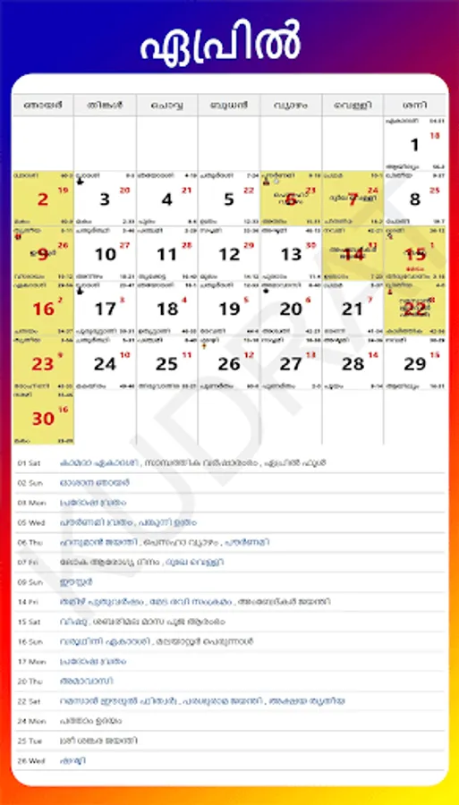 ● Free Malayalam Calendar 2023 Offline app consists of details for the entire year 2023 with daily and monthly view.
