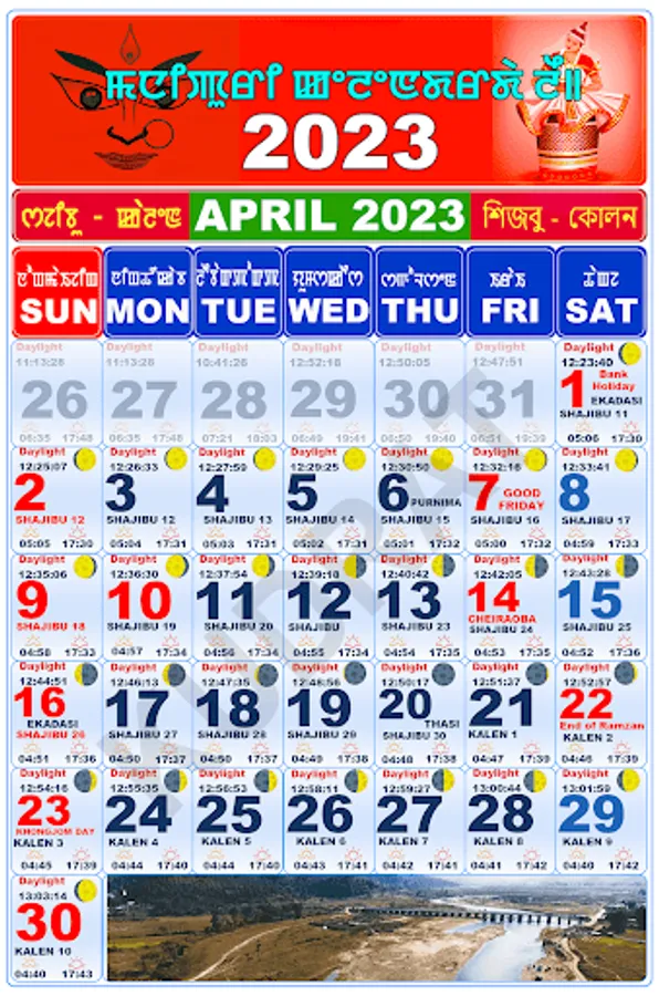 ✪ Free Manipuri Calendar 2023 Offline app consists of details for the entire year 2023 with daily and monthly view.