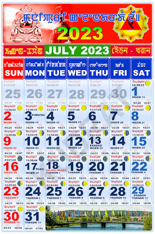 This Manipuri calendar 2023 Panchang for any day of the calendar like Tithi, paksha (shukla and krishna), Month (maasam), Week (vaaram), Yamaganda, Gulika Kala, Calendar Bajda, yoga, karana, nakshatra and vaar.