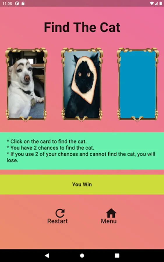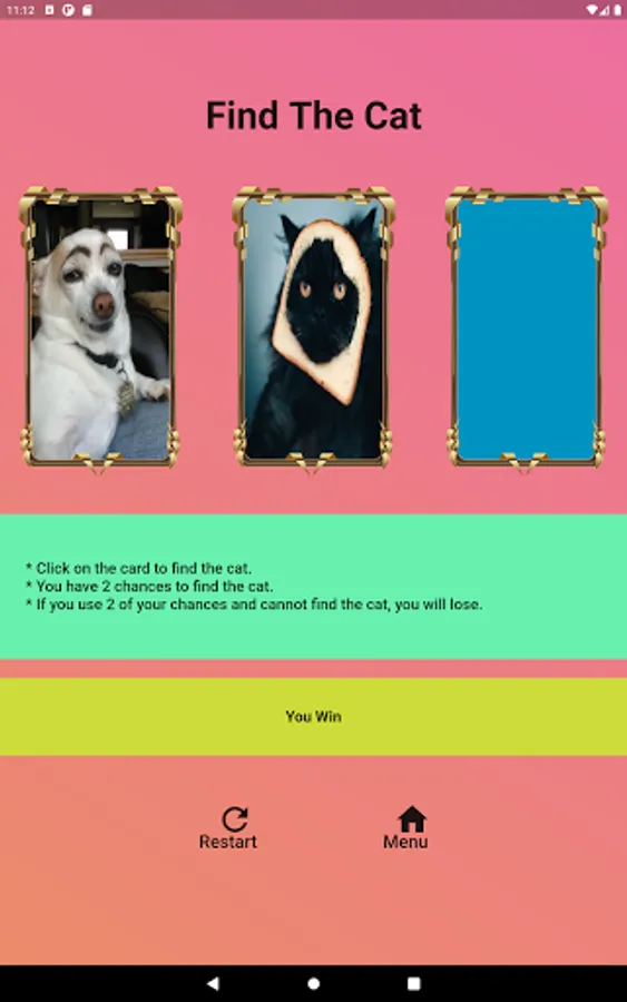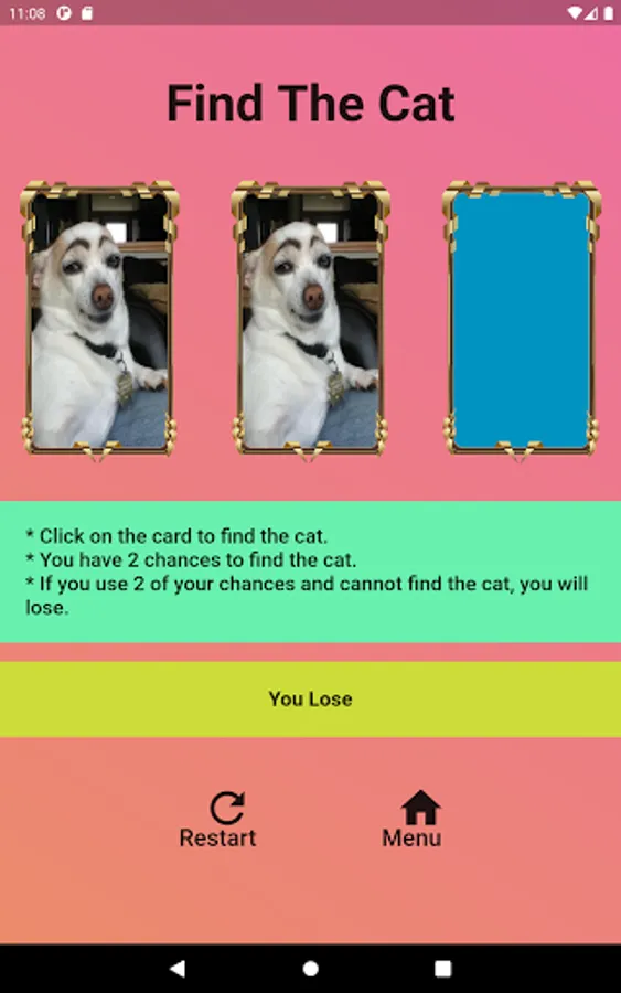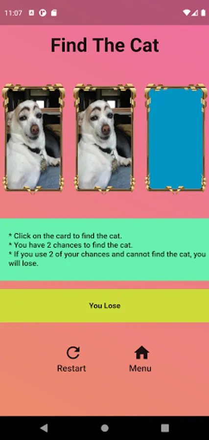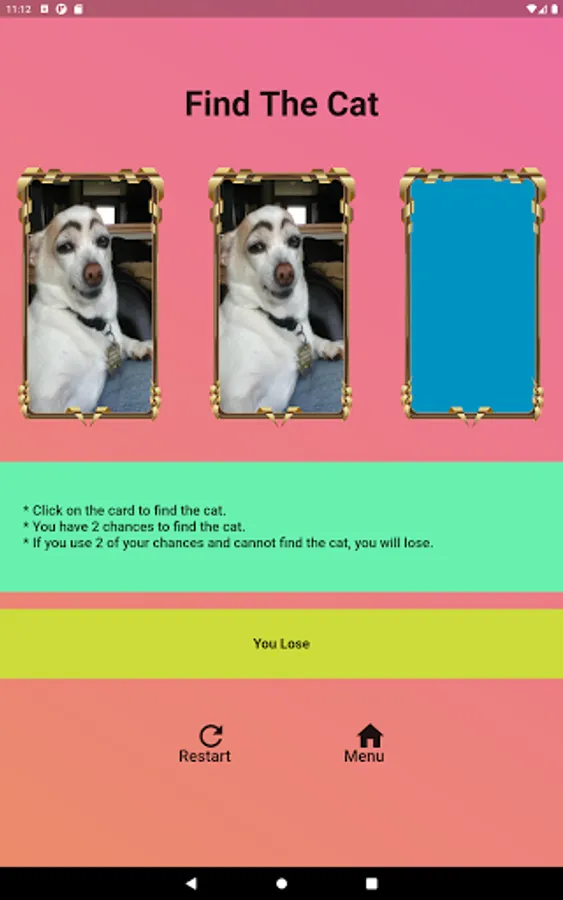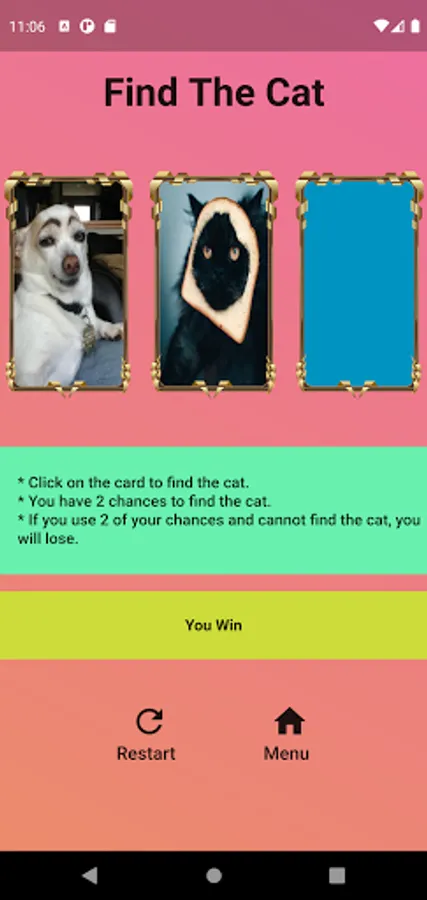 * If you use 2 of your chances and cannot find the cat, you will lose.