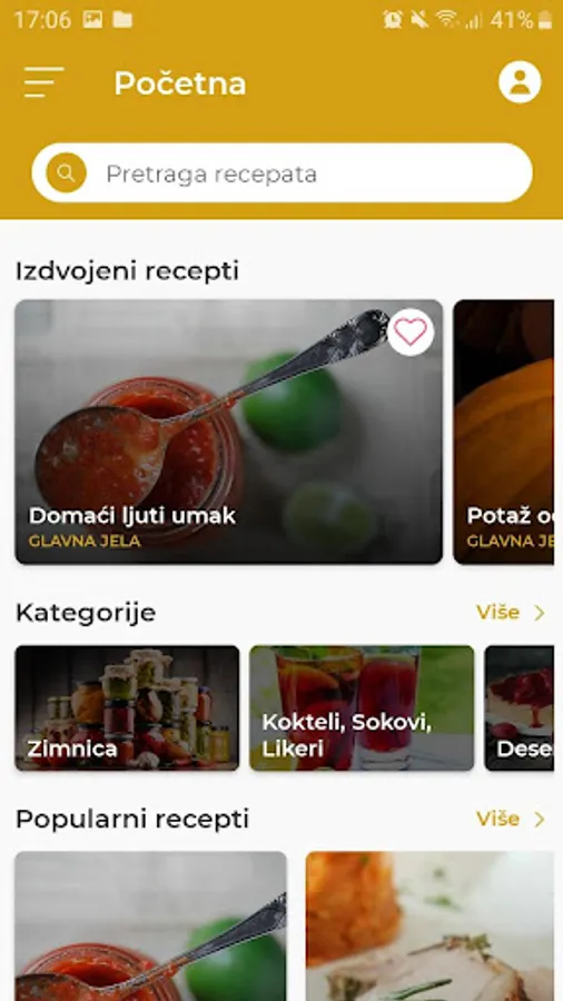 Through the application, it is much easier and faster to follow the newly published recipes directly on the front page of the application. Within the application, a quick search of the recipe archive is enabled. Log in with your username and password and access your favorite recipes.