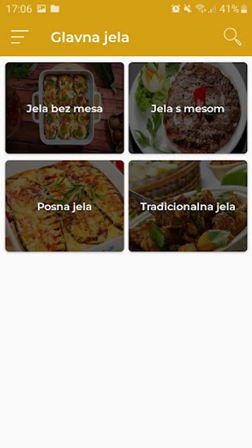 Quick search of recipes with the possibility of filtering by categories using the menu in the left corner of the application!