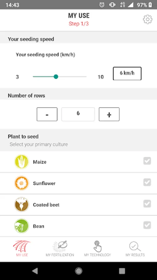 Criteria such as crop-type, seeding speed, spacing, application rate and crop management are used to find the ideal seed drill for you. Seeding precision and quality are priority when this app helps choose the precision seed drill best adapted to your farm.