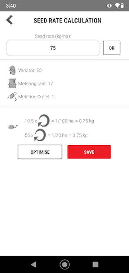 Kuhn has developed a calibration assistant to help you determine the appropriate settings for your seed drill and seeding conditions (seed type, quantity, etc). This application will also provide you with a seeds/m² to kg/ha convertor.