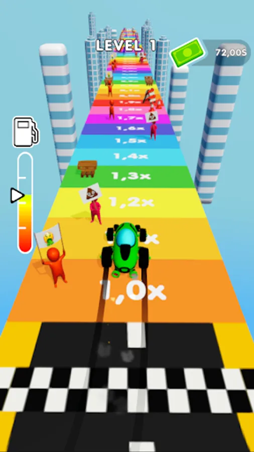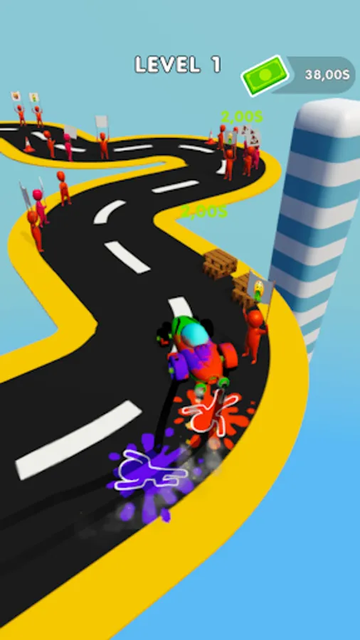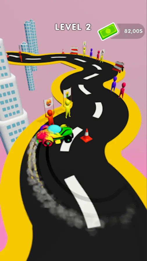 Just tap on the screen to drift your car and smash people. Drift better, smash more!