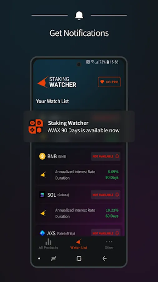The most demanded staking options go out of stock fast. But with the Staking Watcher application, you will never miss out on the most profitable staking options.