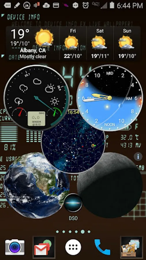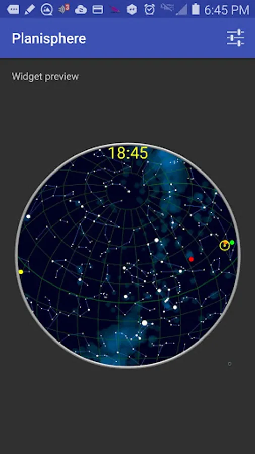 The round shaped sizable and highly configurable starry sky view (known as the Planisphere) widget will help to personalize your home screen providing the infinite number of combinations of colors and decorative features. You can match your home screen theme, other widgets look, as well as the informational content precisely to your liking. On the first screenshot, you can see my home screen with 5 matching widgets cluster. If you are missing something in this widget - just ask me and I implement that in the next version!