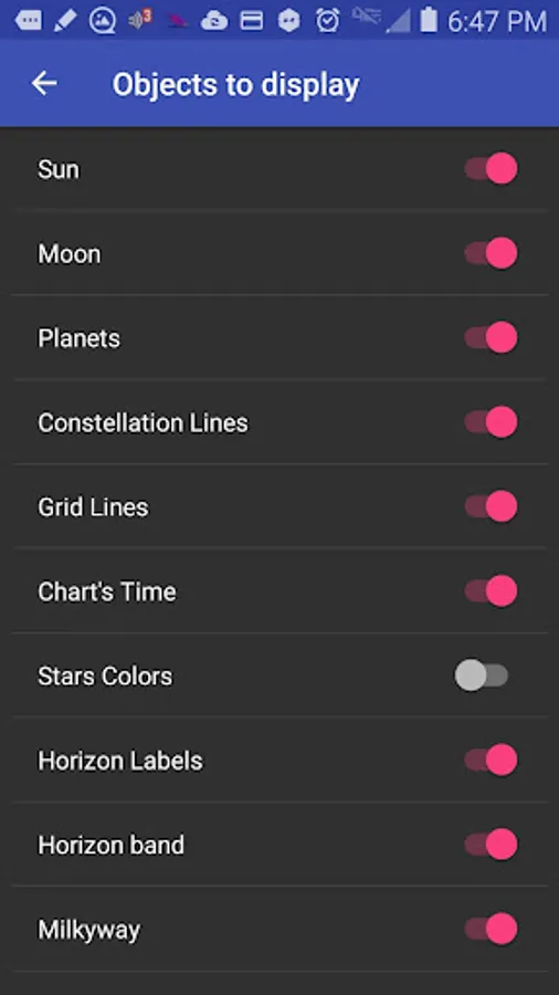 - Common constellations lines.