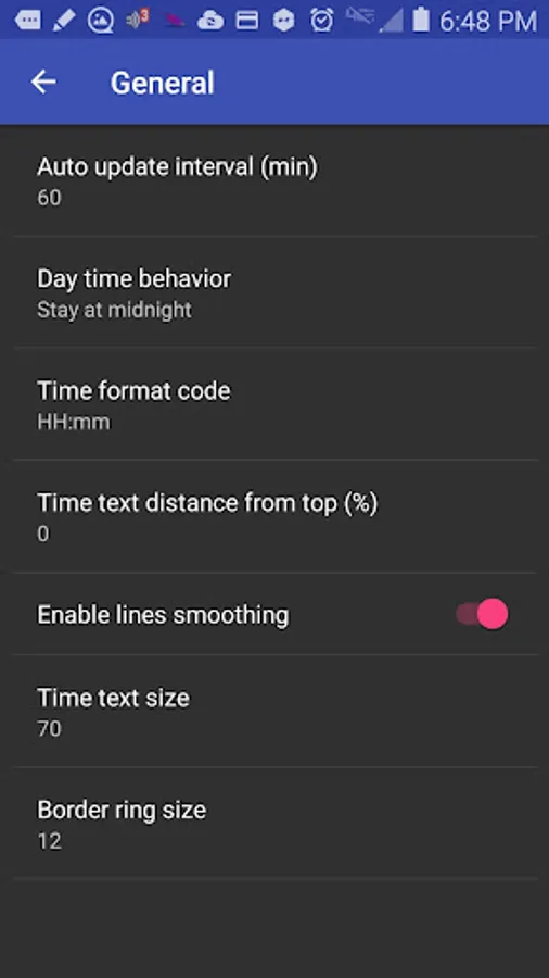 Almost every aspect of the widget can be configured using the accompanying configuration app. That includes all of the colors, sizes of elements, automatic behavior, and response to the touch. See the configuration screen of the widget with an example of totally mystic-looking inverted colors configuration just before the last screenshot above. Your imagination is the only limit!