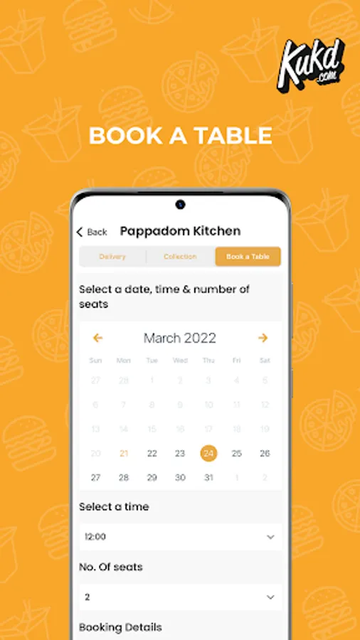 With the KUKD app you can also make table reservations at your favourite restaurants at the click of a button. Gone are the days of hanging on the phone waiting to get through to the restaurant, now you can simply book a table online via your phone or tablet. Kukd offers a whole host of restaurants to book at. Just select your restaurant of choice, click the Book a Table button and fill out your details.