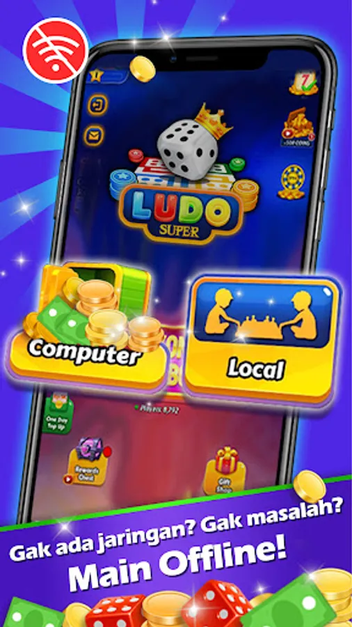 Ludo Super juga menyediakan komputer, mode lokal, Anda juga bisa bermain dengan keluarga dan teman dalam kondisi offline