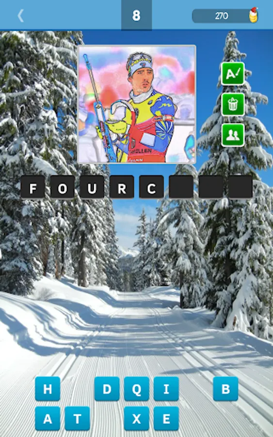 Guess the biathlete 2020/2021 is an interesting and exciting quiz game for fans of the biathlon. In the game you need to guess the biathlete shown to the picture. You must to type the name of biathlete from available letters. The base contains a pictures of the most famous sportsmen of Biathlon World Cup 2020/2021 and of recent 7 years.