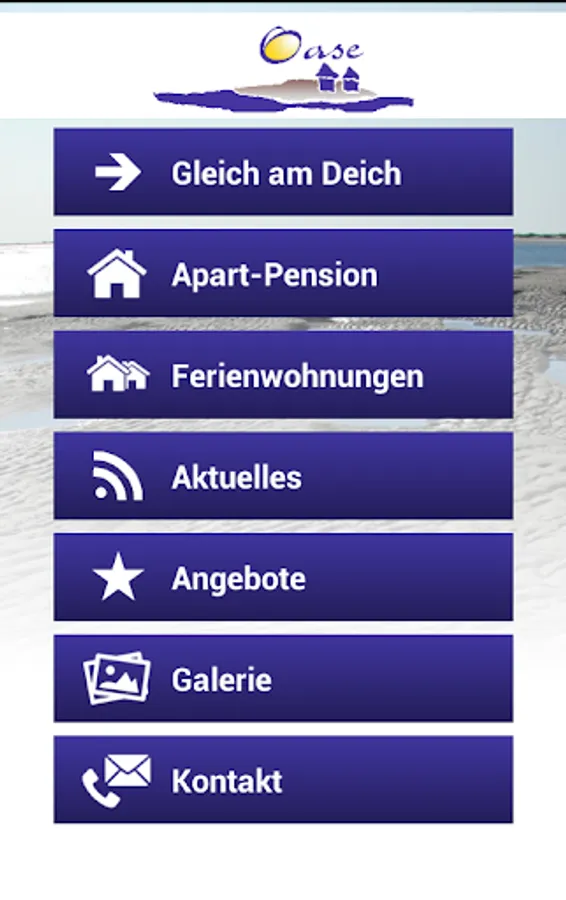 The OASIS Baltrum app provides all information about the OASIS Apart Pension ° ° ° apartments of family Hinrichs on the North Sea island of Baltrum. The OASIS is a refuge from the desert of daily life, when you are ready for the island.