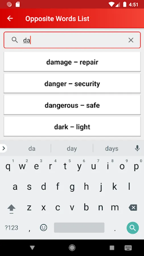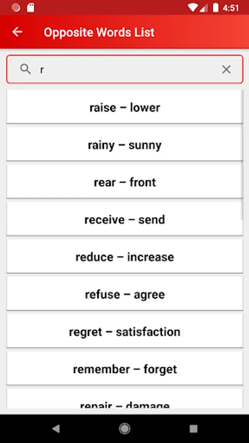 The similar synonyms and opposite antonyms words app is very interesting to memories the words is very helpful.